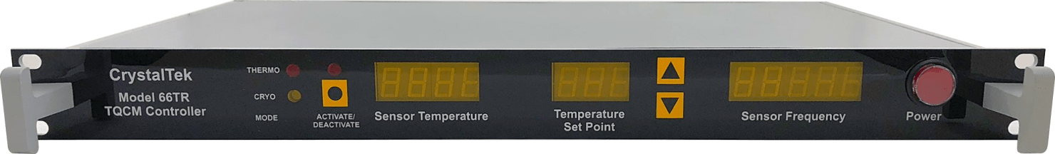 The 66TR Controller is required to operate the TQCM and CQCM. It provides power and temperature control to the QCM and processes frequency data.